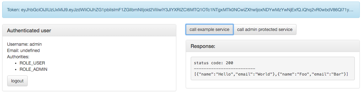 ##About This is just a simple demo for using JWT (JSON Web Token) with Spring Security and Spring Boot. This solution is partially based on the blog entry REST Security with JWT using Java and Spring Security and the demo project Cerberus. Thanks to the authors!