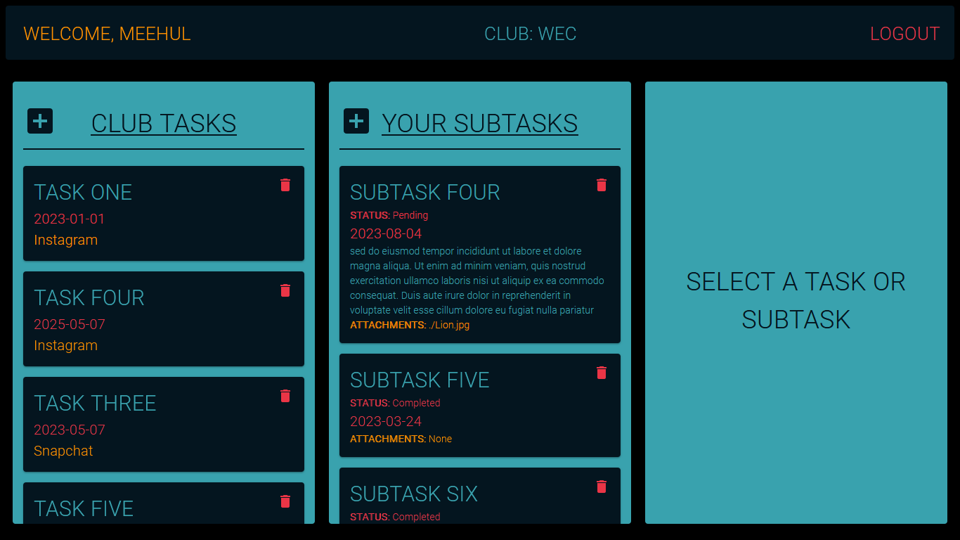 - There has been a dashboard created for the viewing, creating, and deleting of the tasks and subtasks.