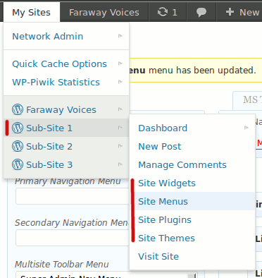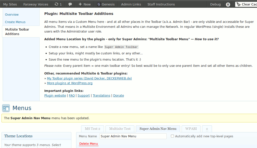 5. Multisite Toolbar Additions: How the optional Nav Menu for Super Admins works. (Click here for larger version of screenshot).