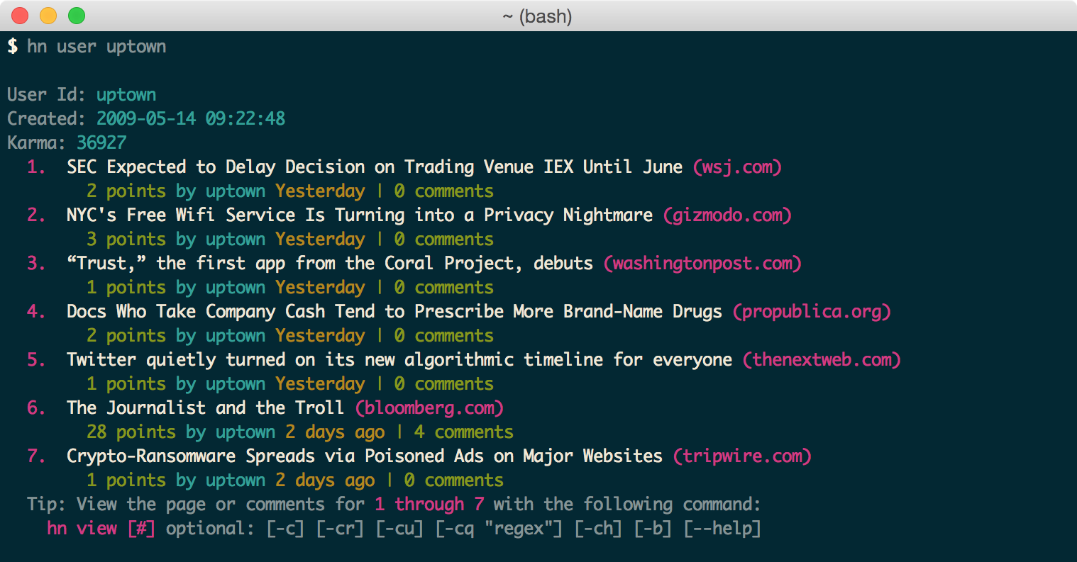 $ hn user [user id]