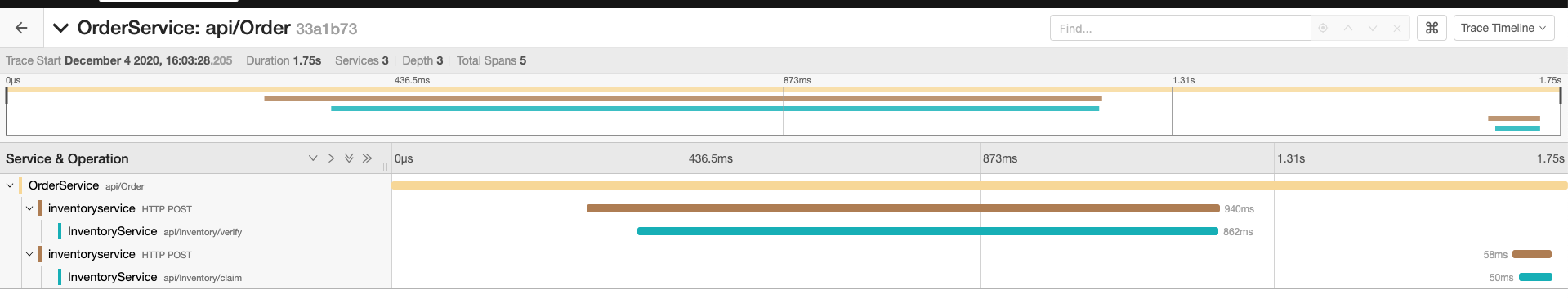 }'Let's navigate to the Jaeger UI. See, how the traces are created and you can take a single trace and see what are the different spans, any external API calls, custom traces, and span.