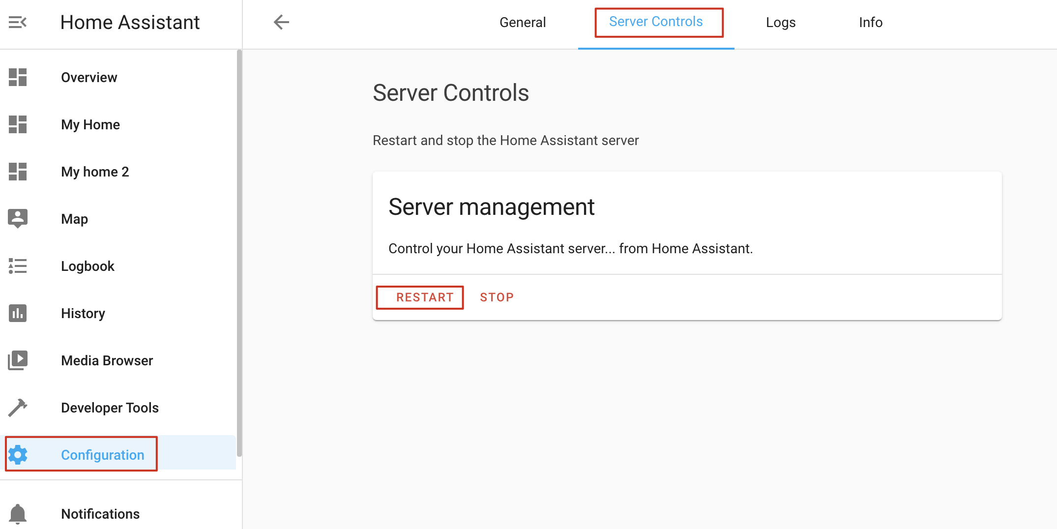 You can restart the Home Assistant server in Configuration > Server Controls > RESTART.