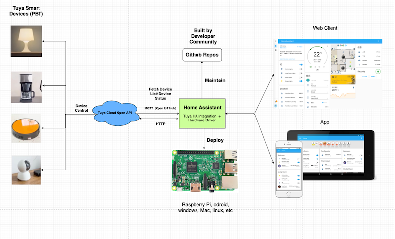 Tuya Home Assistant integration is developed for controlling Powered by Tuya (PBT) devices using Tuya Open API, officially maintained by the Tuya Developer Team.