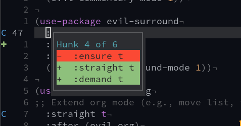 Hello thanks for this awesome package. Is there a way to pop the hunk when the cursor is over ? I know there's `git-gutter:popup-hunk` which opens it in another window. Something like this: