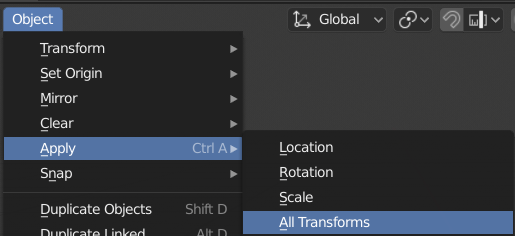 In the Properties panel (usually on the right side), go to the Transforms tab. There you can apply the transforms by pressing the Apply button on them. IMPORTANT: DO NOT APPLY THE ARMATURE TRANSFORM