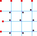 An OID is encoded in a pattern of 16 pixels that spans over a square of 1 mm x 1 mm. The pixels (0,05 mm x 0,05 mm each) of the first row and column are used to define a grid. As the third pixel in the first column has a slight indent, so the orientation of the pattern can be determined.