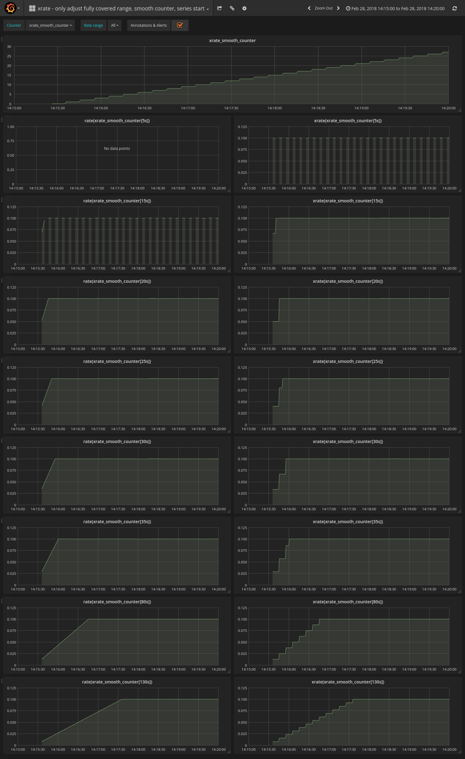 The experiments you published really made things click for me. Only when I saw your screenshots of the rate of a slowly-incrementing counter being visualized inaccurately with the stock rate and precisely with your modified xrate function, did it click for me that this was exactly the problem I was having, and the way your function represented the data matched exactly the behavior I had been seeking for months.