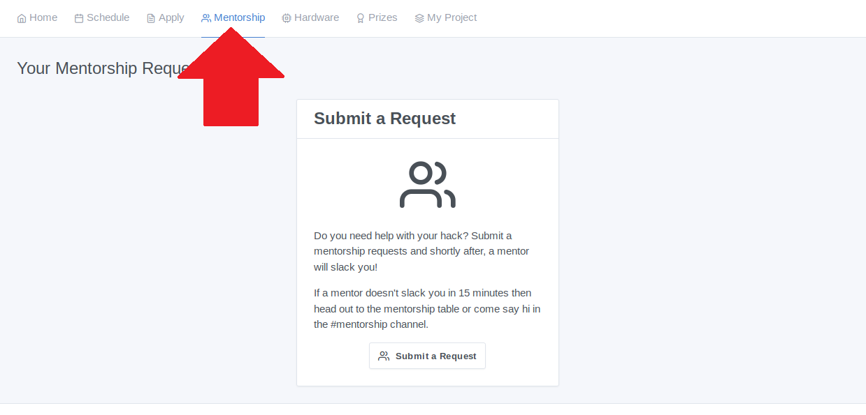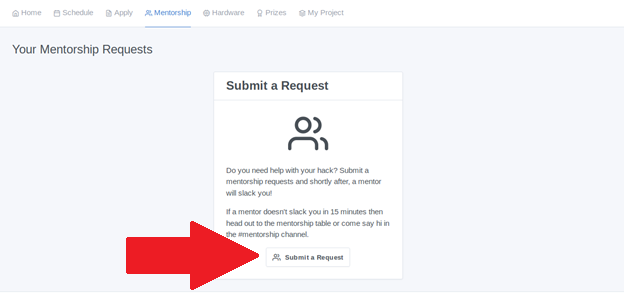 If a hacker needs help with their project, they can request for a mentor to work with them to solve their problem. This is handled via mentorship requests. Hackers can have a maximum of five requests at a time.