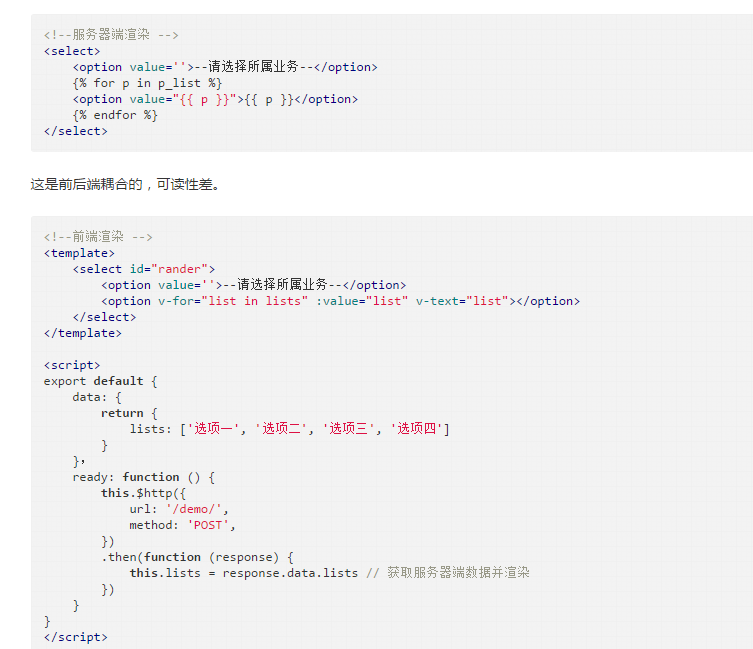 - 彻底解放前端(前端不再需要向后台提供模板或是后台在前端html中嵌入后台代码)