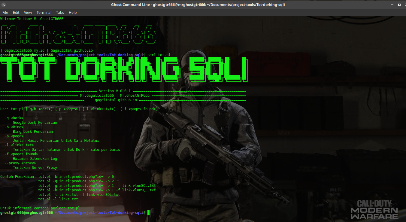 - perl tot.pl -g inurl:product.php?id= -p 2