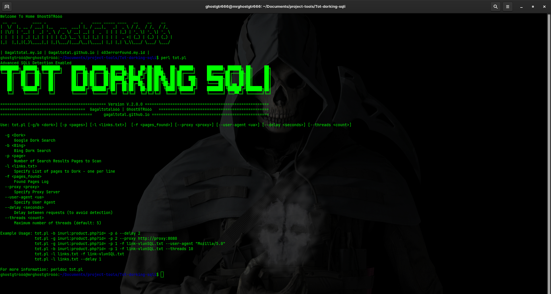 - perl tot.pl -l links.txt- Enhanced SQLi Detection: