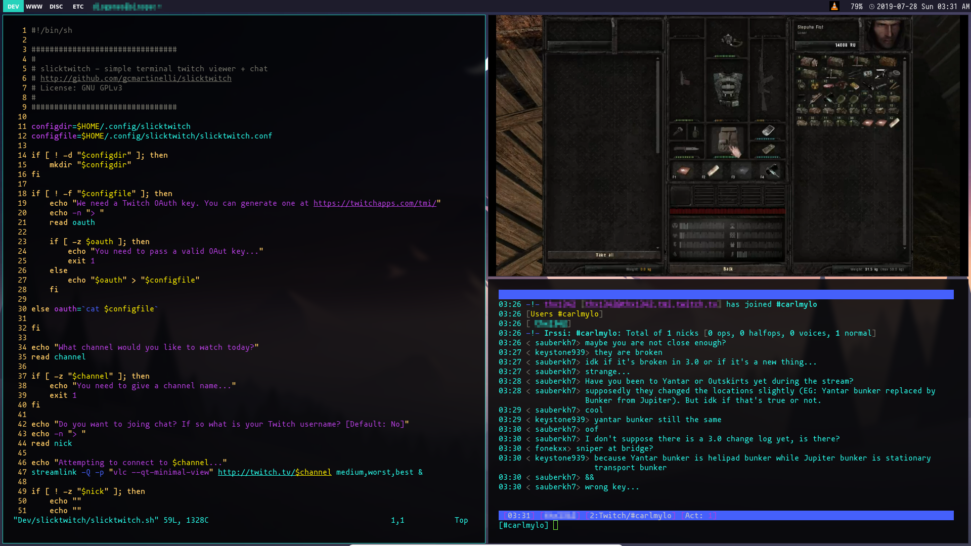 Simple shell script that runs VLC and IRSSI to launch a Twitch video and Twitch chat on the terminal.