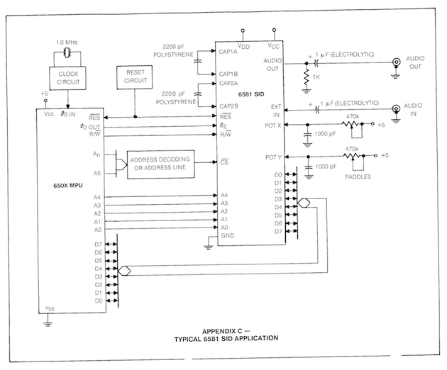 La board riproduce esattamente le "condizioni al contorno" per il SID chip come se si trovasse alloggiato in un Commodore 64 originale. L'application note originale mostra chiaramente i collegamenti da effettuare e i pochi componenti esterni richiesti (generatore di clock, condensatori e poco altro).