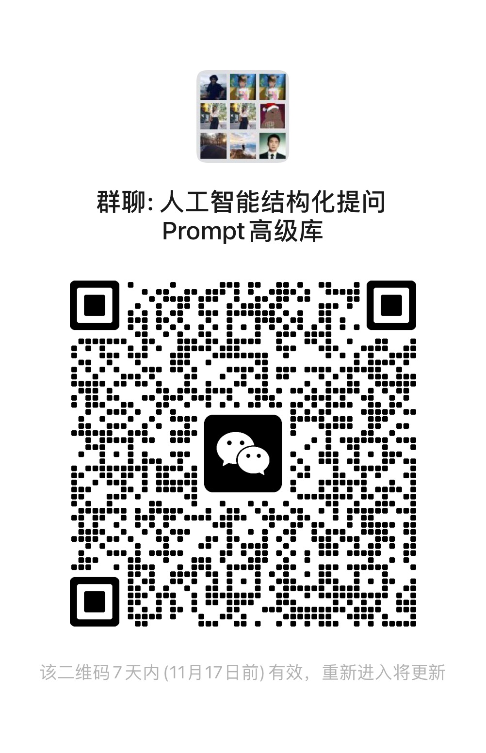 加入Prompt结构化提问体验交流群,与AI技术领域的专家和爱好者一起探讨最前沿的信息!在这里,你可以体验到最先进的人工智能技术,与志同道合的人交流,共同提升你的知识水平。不管你是专业人士还是爱好者,都欢迎加入我们的群体!