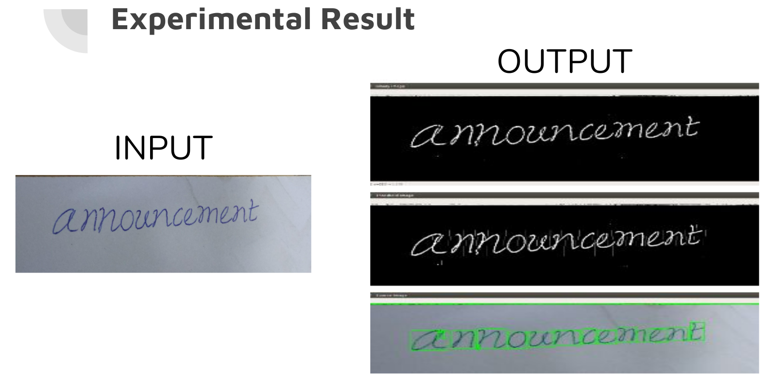 The purpose of this project is to take scanned handwritten/typed documents (image files) as input and generate character level segmentation of its contents.