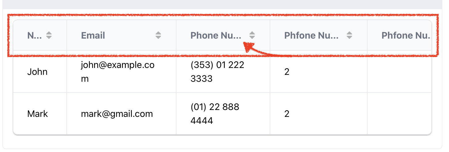 When the length of the column name is longer than the content of the cells in the column, the column name will be cut off when sorting is enabled. It looks like that the column does not stretch to fit the column name and the sorting button.