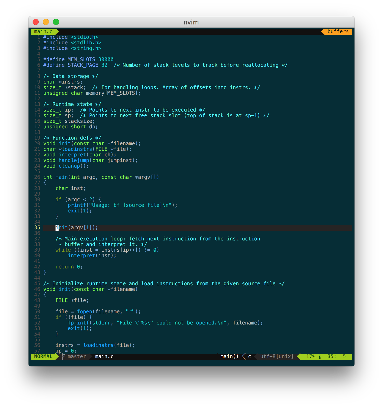 ~/.vimrcfile to enable Aurora:syntax on colorscheme auroraNOTE: To have the terminal colorscheme work properly, you may need to also add the following lines to your .vimrc: