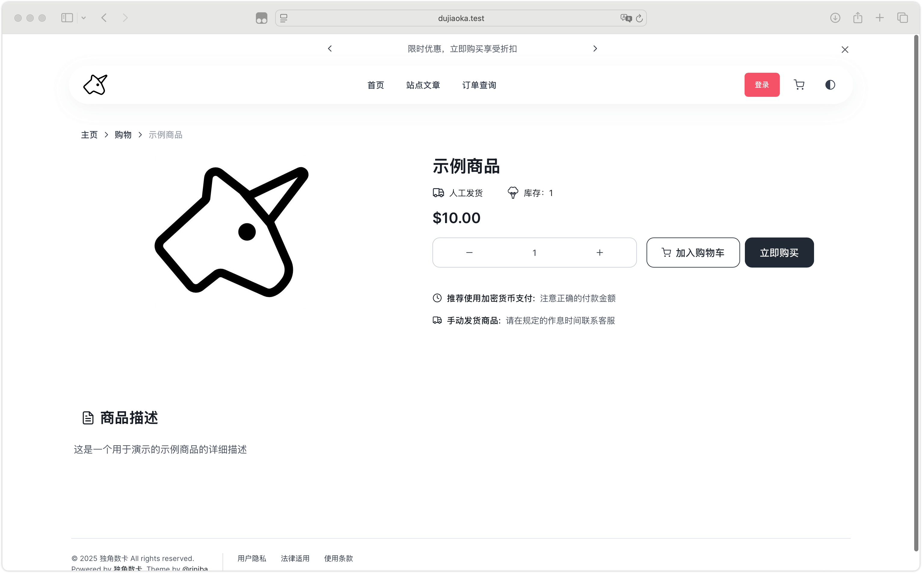 独角数卡是一款用于学习PHP搭建自动化销售系统的程序案例,仅供学习交流使用。