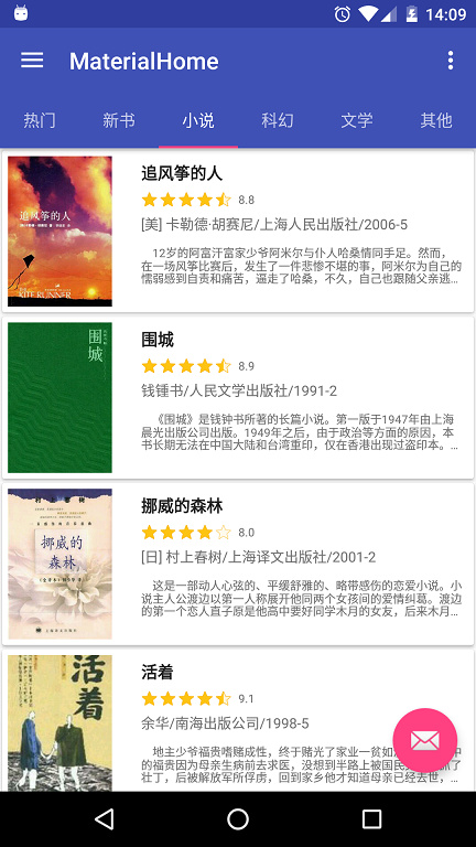 一款基于 Material Design 的图书展示类 app。