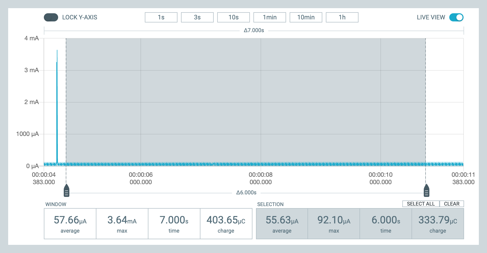 This means that with waking every second we get to an average power consumption of less than 600uA, and when we are below warn voltage this goes down even further to 175uA.