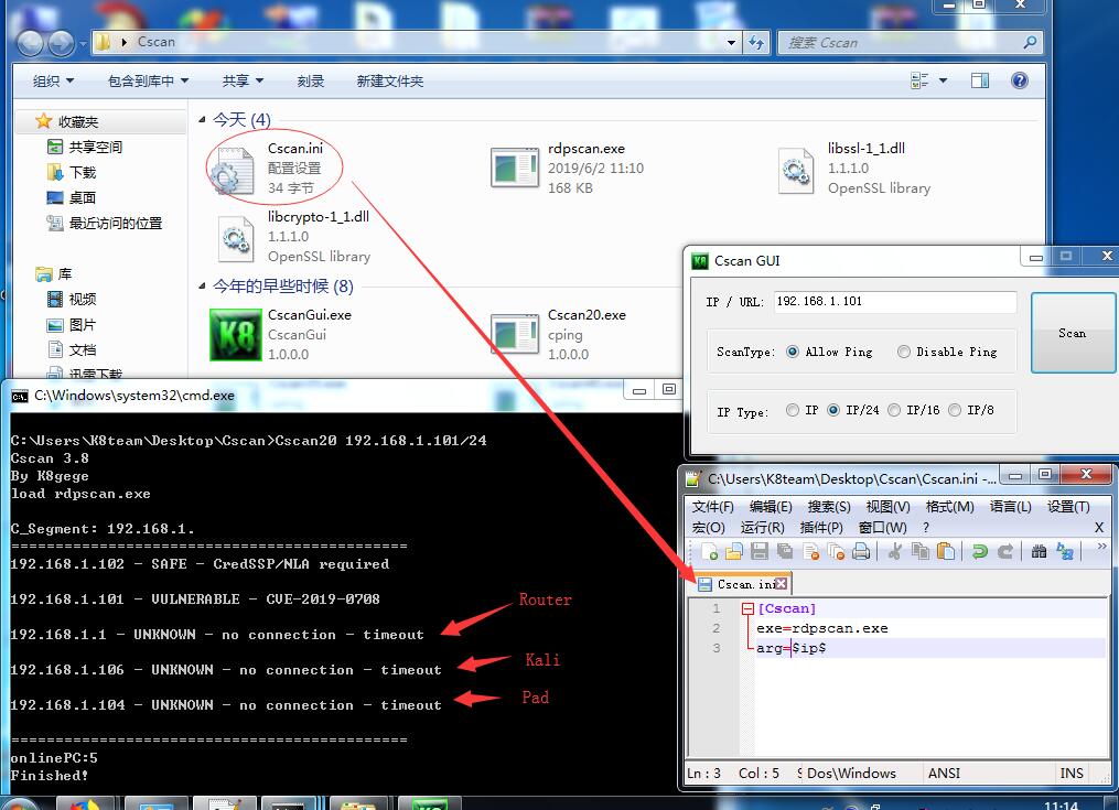 将rdpscan.exe以及dll文件拷贝至Cscan目录,新建Cscan.ini文件,内容如下