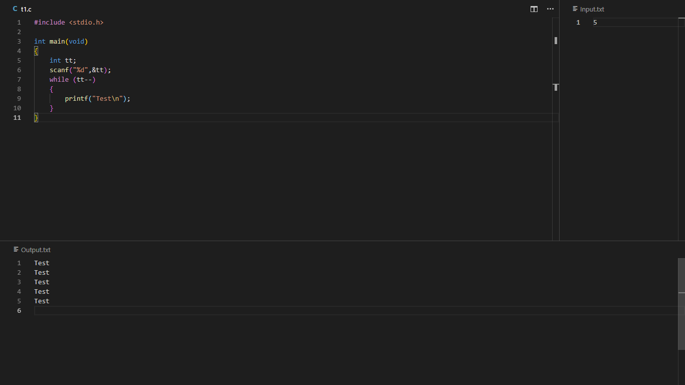 ctrl+shift+band select Create Files. This should create 2 files(Input.txt and Output.txt) in the root of the workspace folder. Note that this is a one time step. -