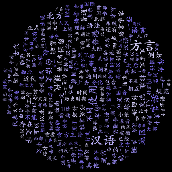 wordCloud.writeToFile("kumo-core/output/wordcloud_gradient_redbluegreen.png");Example of tokenizing chinese text into a circle