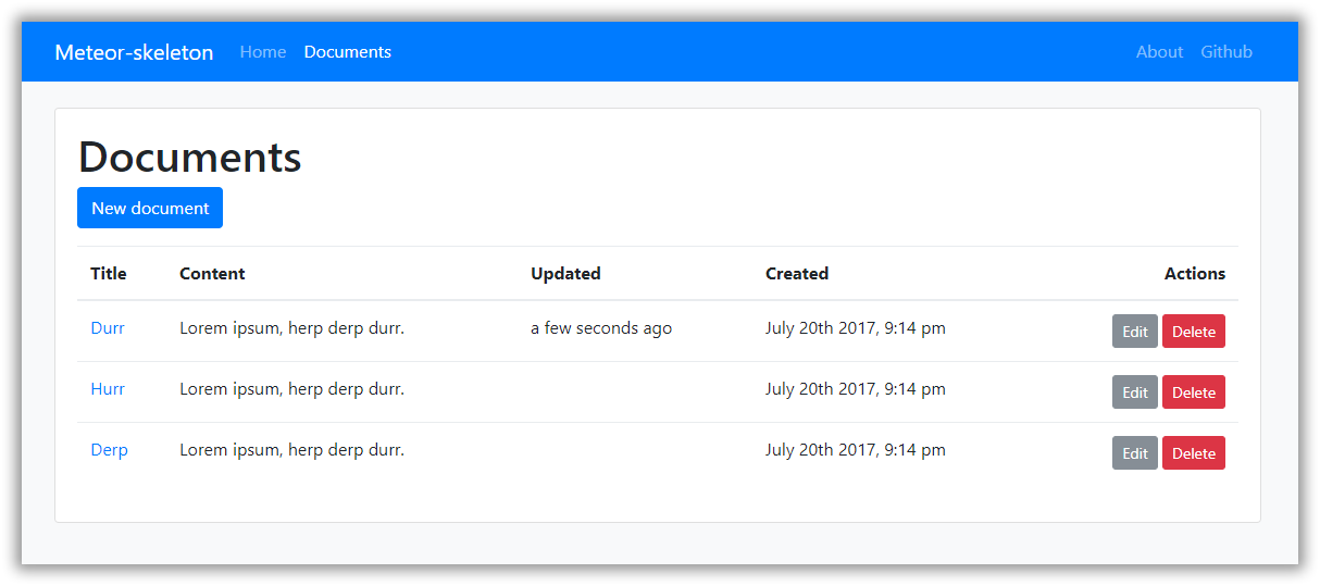 git clone https://github.com/kjetilhau/meteor-skeleton.git cd meteor-skeleton- Remove the .git folder