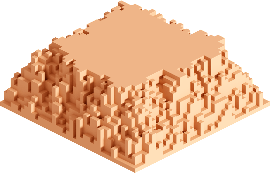 | Threshold | Skews how often sand is added. Values closer to 0 quickly create peaks, where as values closer to 100 will add many more voxels. |