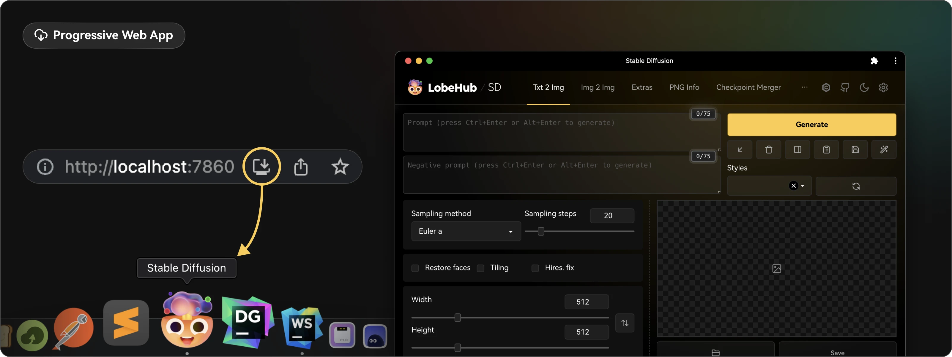 Alternatively, you can clone it for local development. To enable hot-reloading mode, you need to start stable diffuison on port 7860 in advance.