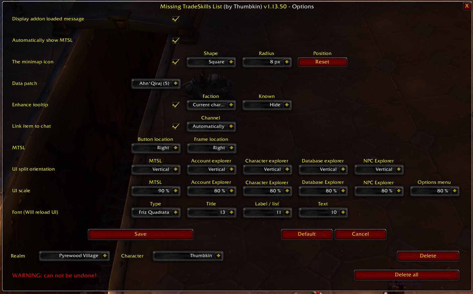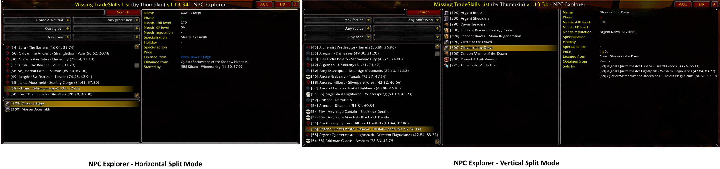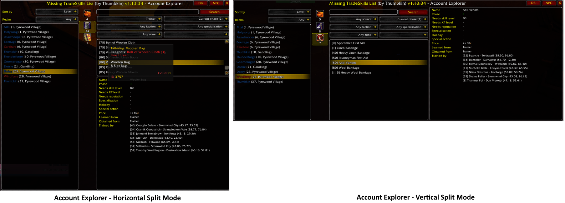 - View all missing skills for the current logged in character per learned profession (/mtsl or /mtsl char)