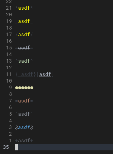 :highlight NeorgMarkupItalic/Bold/Underline?if they all look the same (like the top three in the screenshot) then it's a colorscheme issue