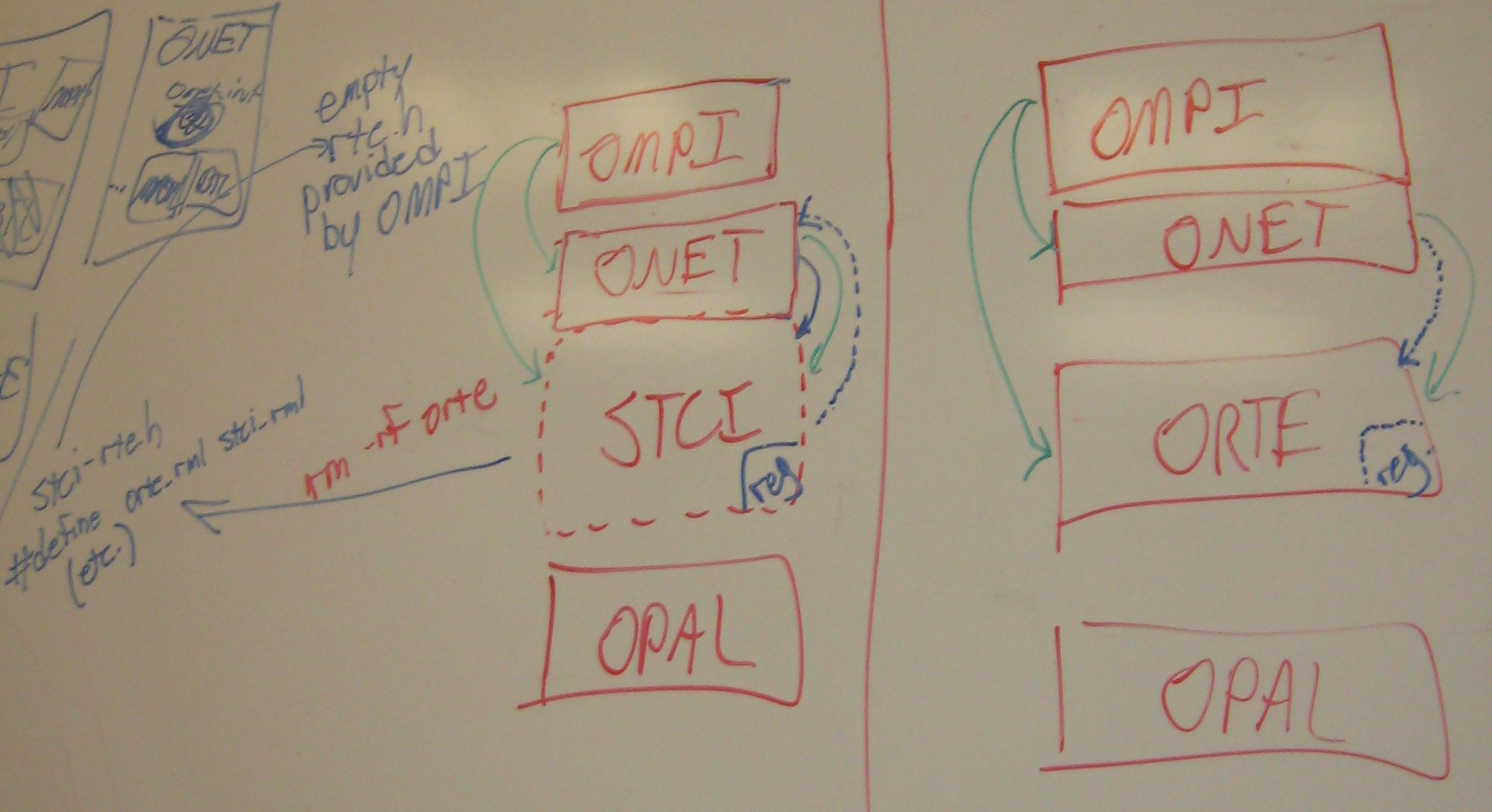 ). See picture below. Due to the complexity of the changes in the ompi layer and still the dependency of onet/orte, this was discarded.