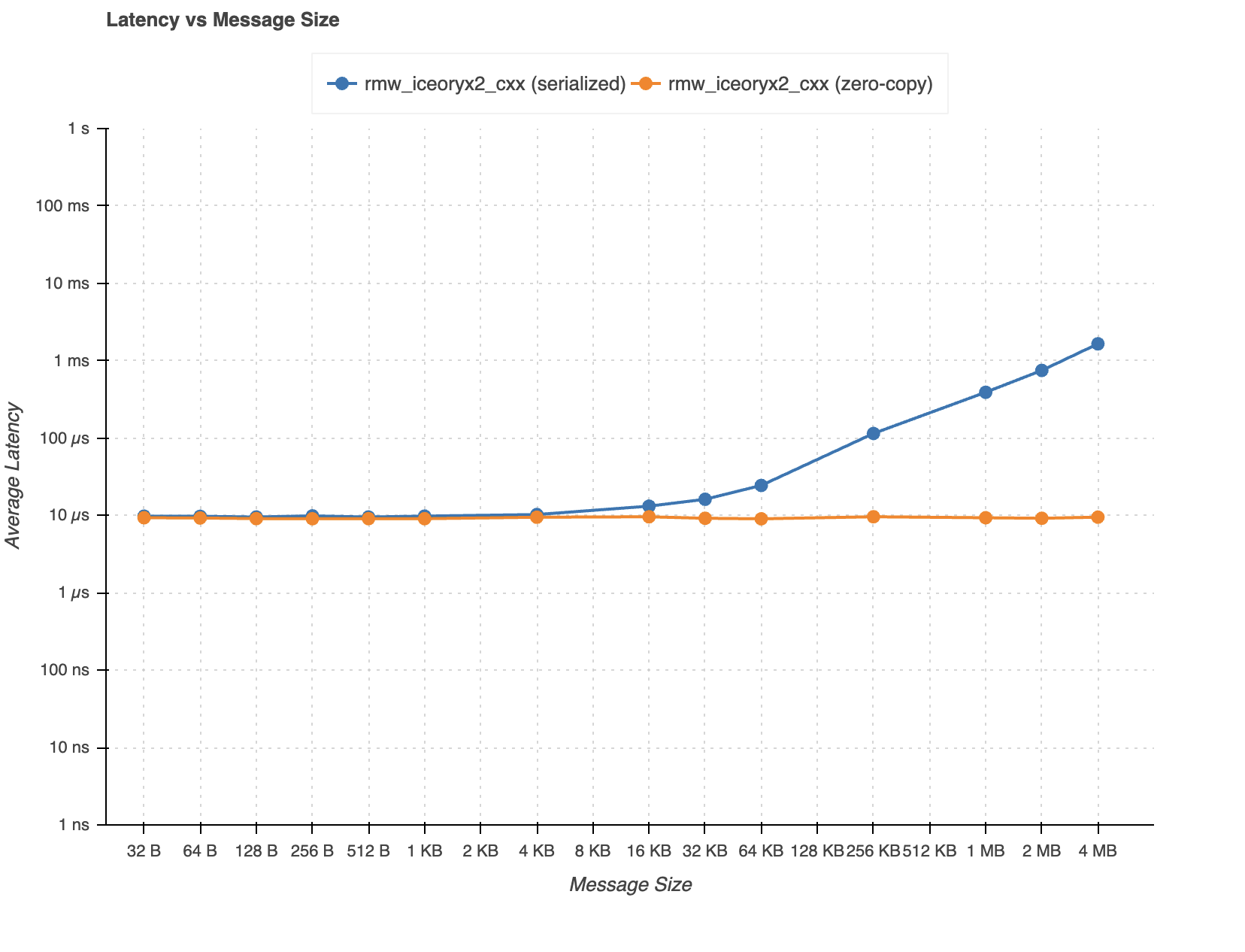 Currently, we are developing iceoryx2 at ekxide. Similar to you, we also know too well of the limitations of iceoryx classic and we try to tackle all of them with iceoryx2. For example, inceoryx2 does not require a central daemon and since the v0.5 release from last December, we fully support dynamic arrays. We do not yet support fully dynamic types like We are currently also working on a rmw_iceoryx2 and the next release is in the works. With that release, we will support unbounded messages via serialization. The overhead of serialization is noticeable however our latest numbers are below 0.4ms for 1MB. I guess you are using it via CycloneDDS, right? It would be great to exchange ideas in the interest of pursuing the best solutions. Btw, if you like, we could also help you to add iceoryx2 to your benchmark. Oh, and we can also just move this discussion to your repo or to eclipse-iceoryx. |