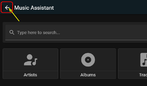 I would like to see a back arrow on the initial Music Assistant screen (as it already appears on the various child MASS screens).
