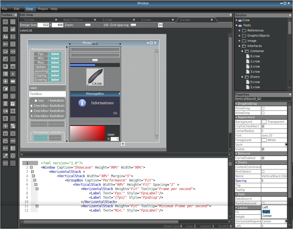 CROW is a pure C# widget toolkit originally developed for easy GUI implementation for OpenTK.