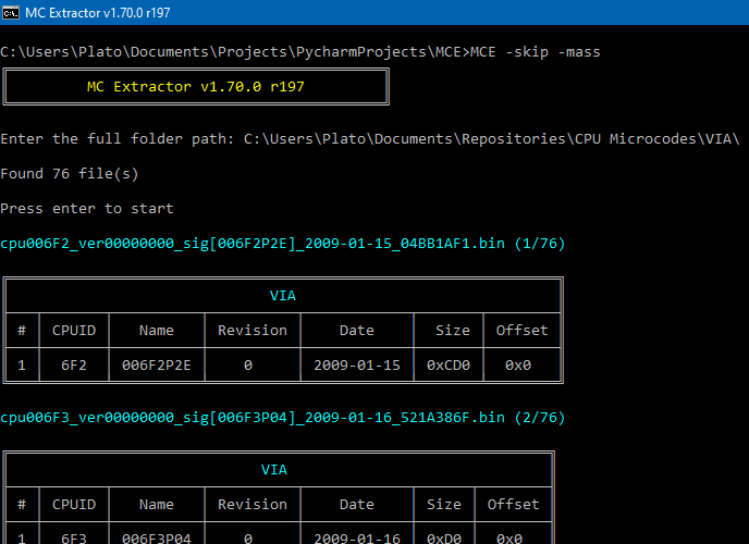 MC Extractor allows end-users and/or researchers to quickly extract, view, convert & report new microcode versions without the use of special tools or Hex Editors. To do that effectively, a database had to be built. The Intel, AMD, VIA & Freescale CPU Microcode Repositories is a collection of every Latest Production Intel, AMD & VIA CPU Microcodes we have found. Its existence is very important for MC Extractor as it allows us to continue doing research, find new types of microcode, compare releases for similarities, check for updated binaries etc. Bundled with MC Extractor is a file called MCE.db which is required for the program to run. It includes entries for all Microcode binaries that are available to us. This accommodates primarily two actions: a) Check whether the imported microcode is up to date and b) Help find new Microcode releases sooner by reporting them at the Intel, AMD, VIA & Freescale CPU Microcode Repositories Discussion thread.