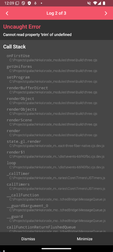 developing a small project i ran through the same error, fixed by going on the file node_modules/three/build/three.cjs and on the function "onFirstUse", inside the first if, theres this line of code: const programLog = gl.getProgramInfoLog( program ).trim(); on the "if ( renderer.debug.checkShaderErrors )" i added the "program" property. Now it is "if ( renderer.debug.checkShaderErrors && program )". solved for me |