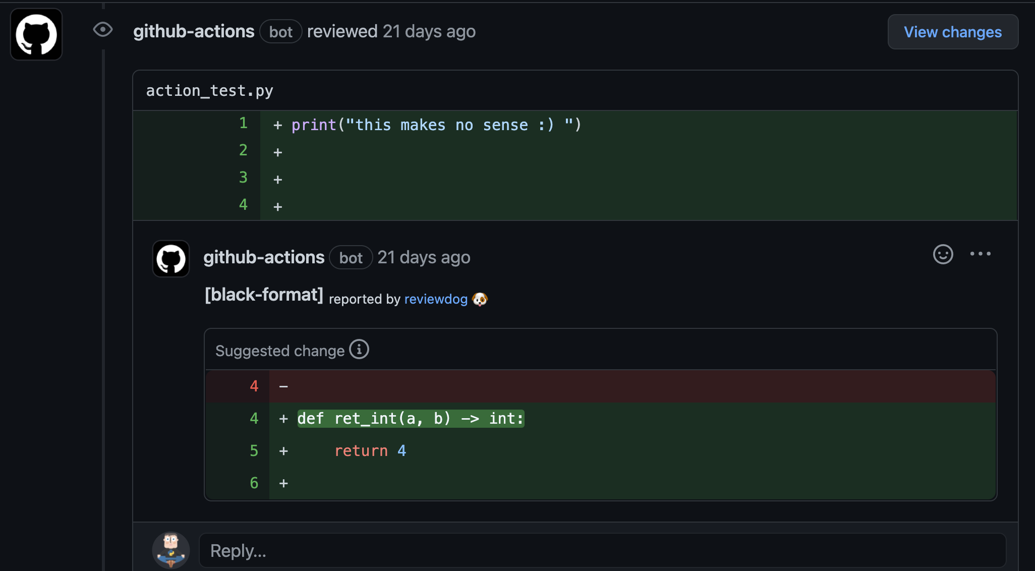 - reviewdog - for black, flake8, hard code credentials and mypy
