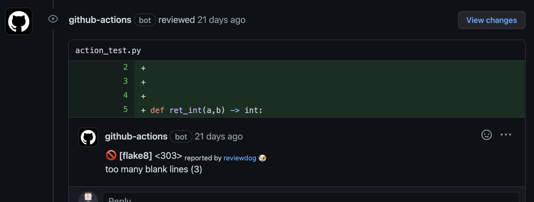 This repository provides a GitHub Actions workflow to check and nicely comment on pull requests in python code bases.
