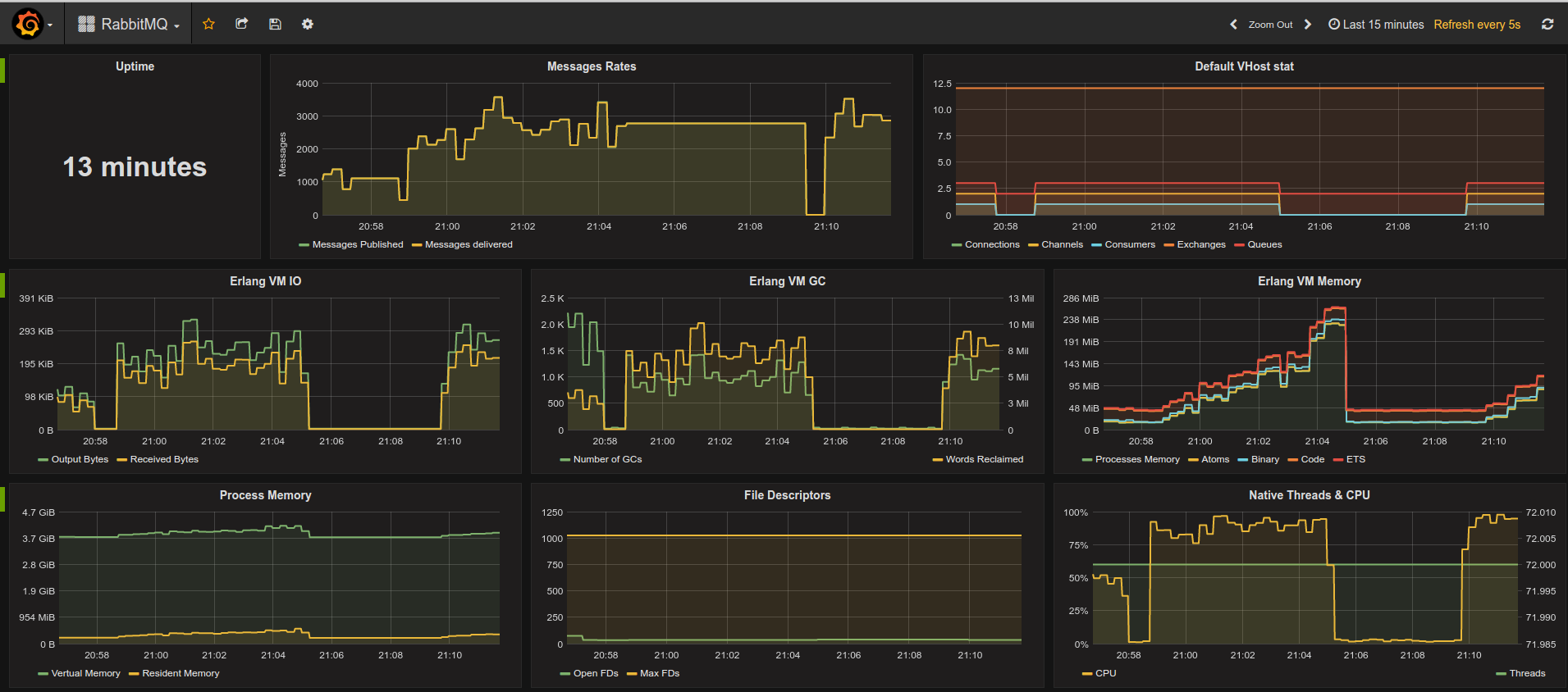 path- scrape endpoint. Default is"metrics". Note RabbitMQ translates this to"{management_plugin_path_prefix}/api/metrics";use_mgmt_auth- use built-in management auth. Default isfalse. If true, relies on management plugin for authentication (that guest:guest on fresh setups);format- scrape format. Default isprometheus_text_format;exchange_messages_stat- same asqueue_messages_statebut for the exchanges;queue_messages_stat- messages state to export. Default is hopefully reasonable. You can read more about possible values here;connections_total_enabled- Default isfalse. Iftrue, the exporter will iterate over all connections and export count grouped by connection state (running, flow, etc).