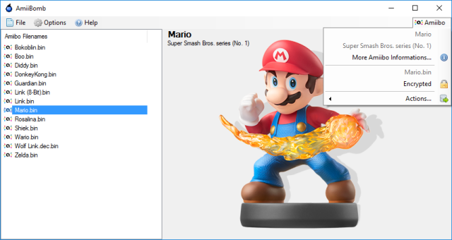 You probably already have them if you know a little about how Amiibo cloning works. Due to Copyright reasons, we can't distribute them, but there are many places to find them online. AmiiBomb sends you to the right website; you just have to highlight the key chars and copy them to your clipboard. AmiiBomb will check if the keys inside are valid, and will ask if you want to save them. If you have already them, you just need to select the key file.