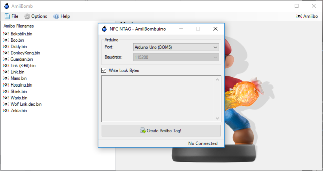 Run AmiiBomb, set the Amiibo folder (*.bin files), select the Amiibo Keys, flash the AmiiBombuino Firmware to the Arduino, and you are ready to Read and Write Amiibo Tag.