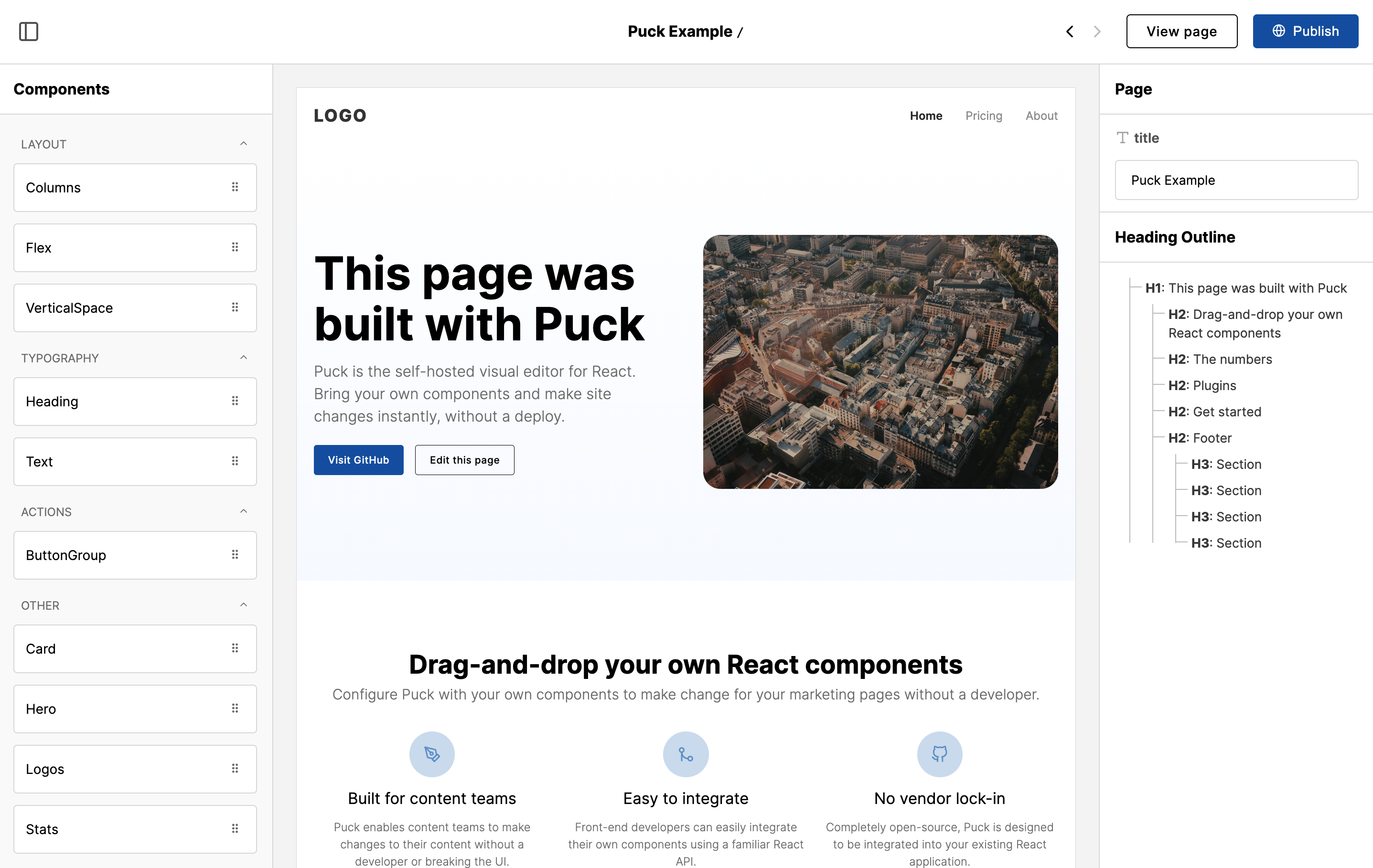 - Contentful field package: Easily load your Contentful content into Puck with this pre-configured field.
