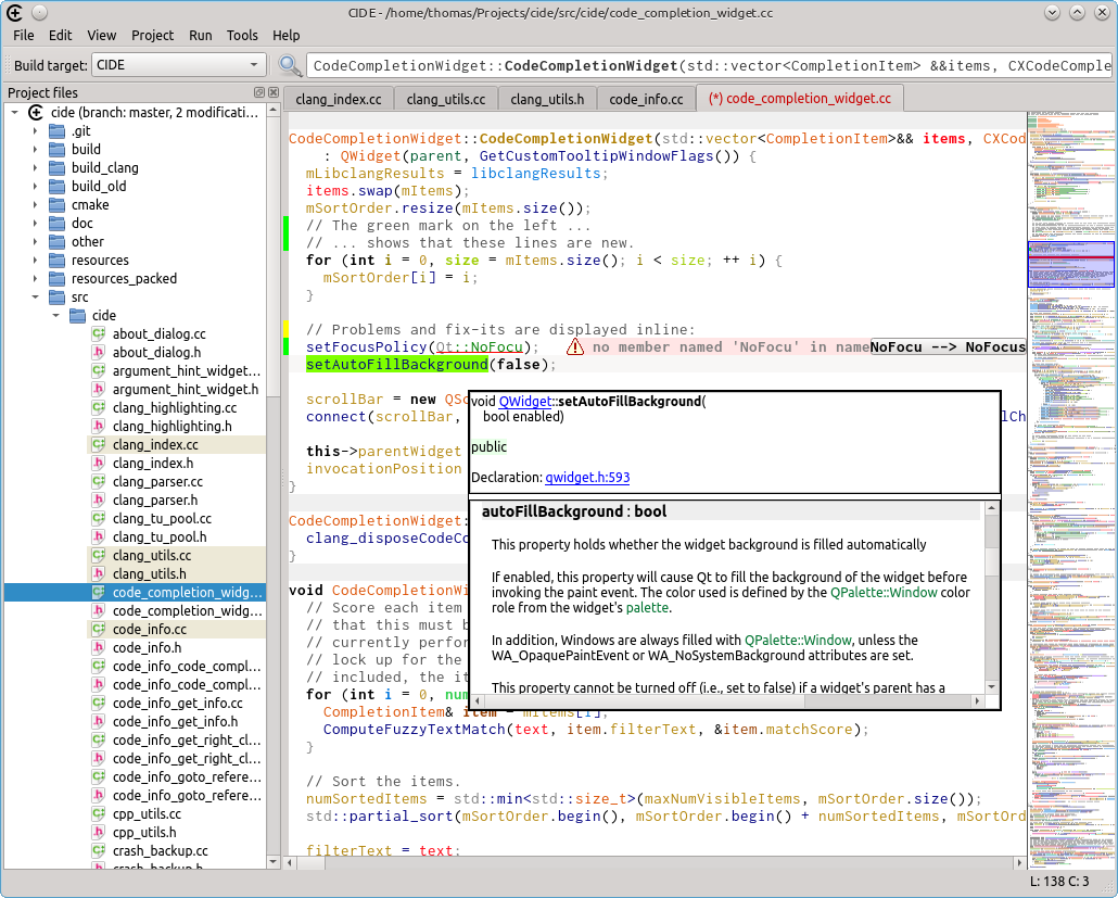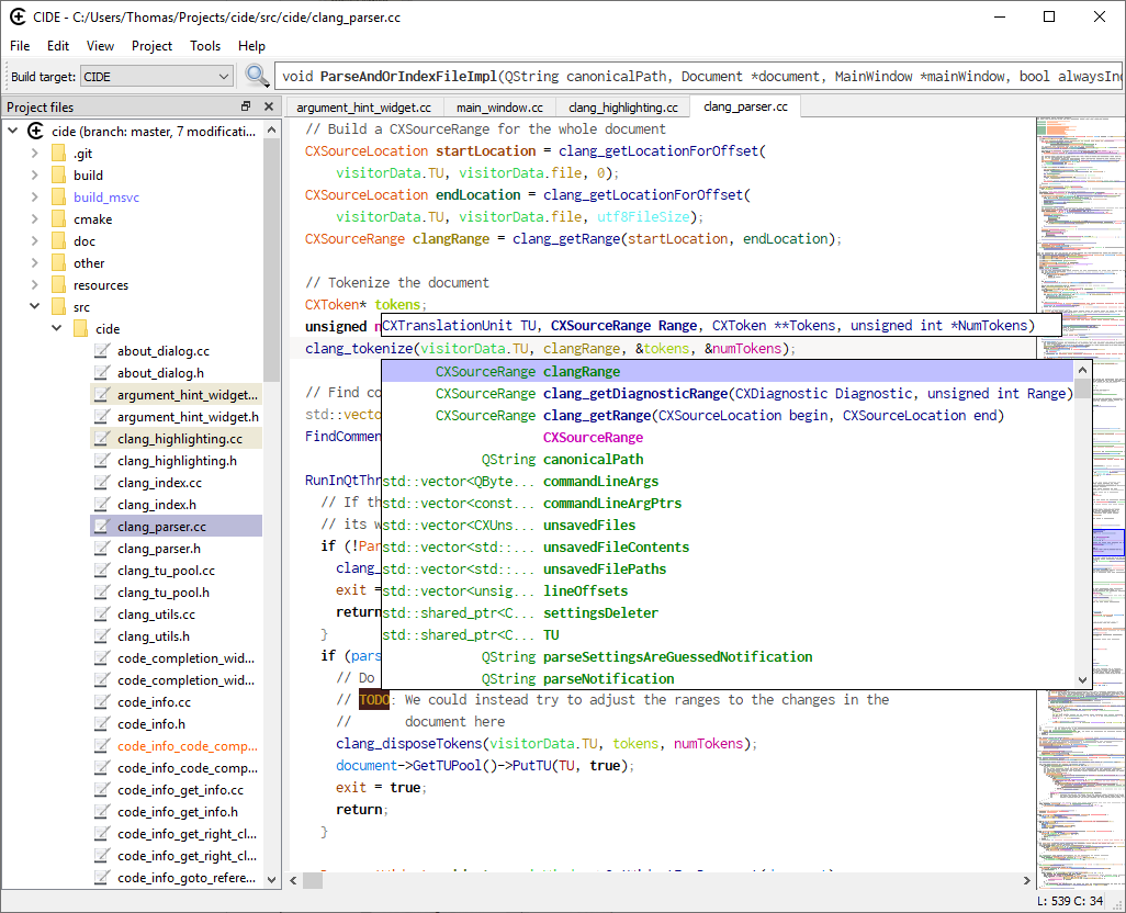 CIDE aims to be a lightweight and fast IDE for C/C++, focusing on: