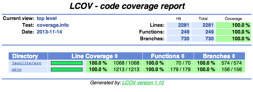 - 100% Branch coverage.