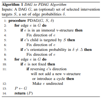 This task calls to implement an algorithm that converts a DAG to a CPDAG that freezes edges oriented by interventions or prior knowledge.