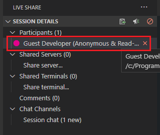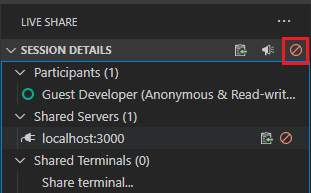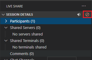 - You can leave the session by clicking on the Leave Collaboration Session icon in the Live Share viewlet.