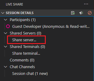 Sometimes you may need to share a web application or other servers that are running locally with participants. Live Share allows you to share local servers with all participants so that they can access the server you shared on their local machines.