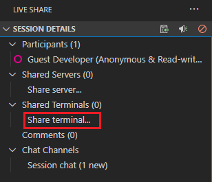 - Select Share a terminal… from the shared terminals list inside the Live Share viewlet.